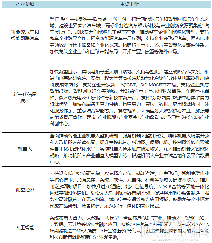 8.推动新兴产业“新”融合。发挥新能源汽车和智能网联汽车、新一代信息技术、机器人、低空经济、人工智能等产业资源禀赋,加快跨领域、跨产业、跨集群深度融合,打造若干具有全国引领力、全球影响力的战略性新兴产业融合集群。到2027年,形成1个万亿级的新能源汽车和智能网联汽车产业集群,4个千亿级的智能家电、先进光伏和新型储能、新材料、新一代信息技术产业集群,争创1—2个国家级战略性新兴产业集群。