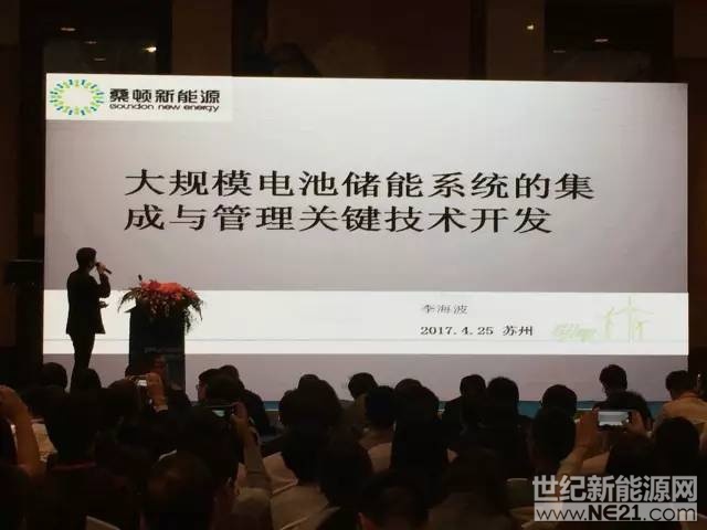 桑顿新能源副总工程师李海波博士受邀主持储能电站暨微电网专场分会,并且发表了主题为《大规模电池储能系统的集成与管理关键技术开发》的演讲,展示了桑顿储能商用进展和智慧云平台体系,提出低成本、长寿命、标准化、高安全、高效率、高能量密度的大规模电池储能系统集成开发与核心技术,并从电池储能系统的控制体系、管理方式、集中应用模式及分布应用模式等方面开展研究,对攻克电池储能系统规模化集群并联、电池健康管理、广域多点应用等难题做了有益探索,获得了行业广泛关注与强烈反响。