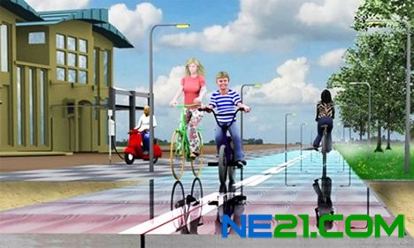 荷兰应用科学研究组织(TNO)与北荷兰省、英泰克公司和欧姆斯艾文红公司合作,提出一种新奇的方法来收集太阳能,这种方法不仅可以鼓励人们使用无排放的交通工具,而且可以产生太阳能:建设太阳能自行车道。