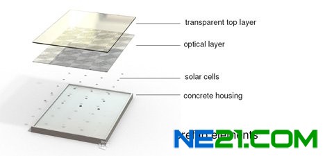 这些水泥上面覆盖着结晶状的硅太阳能电池