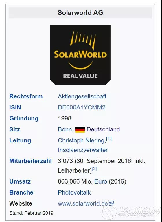 德国最大的太阳能企业Solarworld的简介。公司在2016年有3037个雇员,营业额达到8.03亿欧元