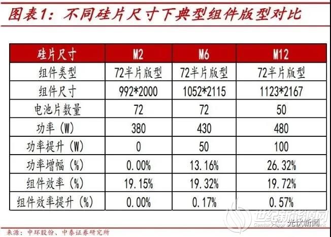降本成效显著,组件效率提升明显。硅片在组件成本构成中占比30-40%,因此硅片技术的提升对于降低组件成本意义重大。2018年以来,硅片尺寸逐渐被优化,出现了157.4、157.75、 158.75、160+、182、210等多种尺寸。光伏硅片的变大、变薄成为各大厂商主攻的技术方向, 降本成效显著,组件效率提升明显。