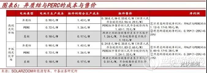 净利润方面:高端光伏市场:HJT与PERC组件端售价不含税差为1.12元/ W ,组件生产成本差为0.17元/ W,不考虑所得税净利润,即HJT与PERC的组件售价-成本,净利润为1.12-0.17=0.95元/W;考虑所得税的净利润:0.95*(1-25%)=0.71元/W(考虑所得税率25%)