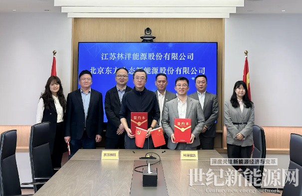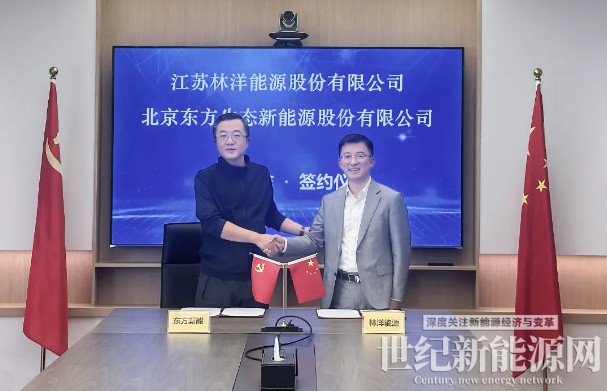 4月16日,江苏林洋能源股份有限公司(以下简称“林洋能源”)与北京东方生态新能源股份有限公司(以下简称“东方新能”)在北京正式签署战略合作框架协议。东方新能副总经理兼董事会秘书于旸,林洋能源副总裁兼董事会秘书崔东旭等共同出席签约仪式。