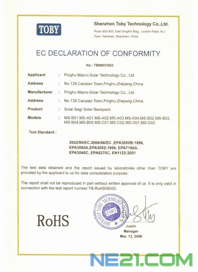 首页 > 荣誉资质 > RoHS-Solar Backpack
