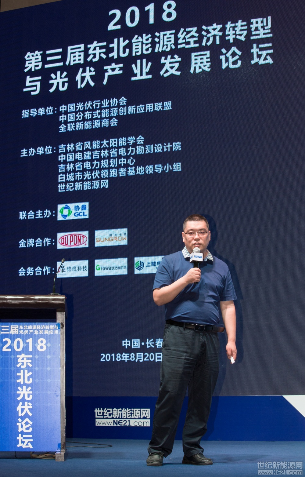 8月20-21日,第三届东北能源经济转型与光伏产业论坛在吉林长春举行,本届大会由吉林省 风能太阳能学会、吉林省电力勘测设计院、吉林省电力规划中心、白城市光伏领跑者基地领 导小组、世纪新能源网等单位共同主办。论坛上,国务院参事、国家能源专家咨询委员会副主任、国家气候专家委员会委员、原国家 能源局局长徐锭明;吉林省发改委原党组书记、副局长曹家兴;国家发改委国际合作中心能 源研究所所长王进;中国电力科学研究院新能源研究中心主任张军军;中国电建吉林省电力 勘测设计院院长、吉林省风能太阳能学会理事长姚飞;白城光伏领跑基地领导小组办公室主任、基地建设现场指挥部总指挥张晓波;中国电建吉林省电力勘测设计院新能源部主任李钦伟;白城光伏领跑者基地建设现场指挥部副总指挥王强;协鑫集成科技股份有限公司助理副总裁、国内销售总裁梁文章等众多光伏领域的企业精英、专家、学者出席论坛并发表演讲。